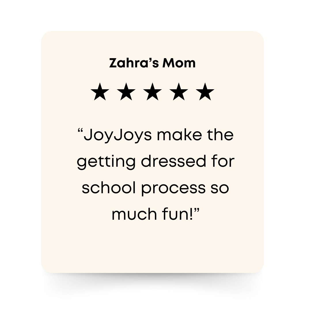 “JoyJoy turned getting dressed from a battle into a fairytale.” – Talia, mom of 3