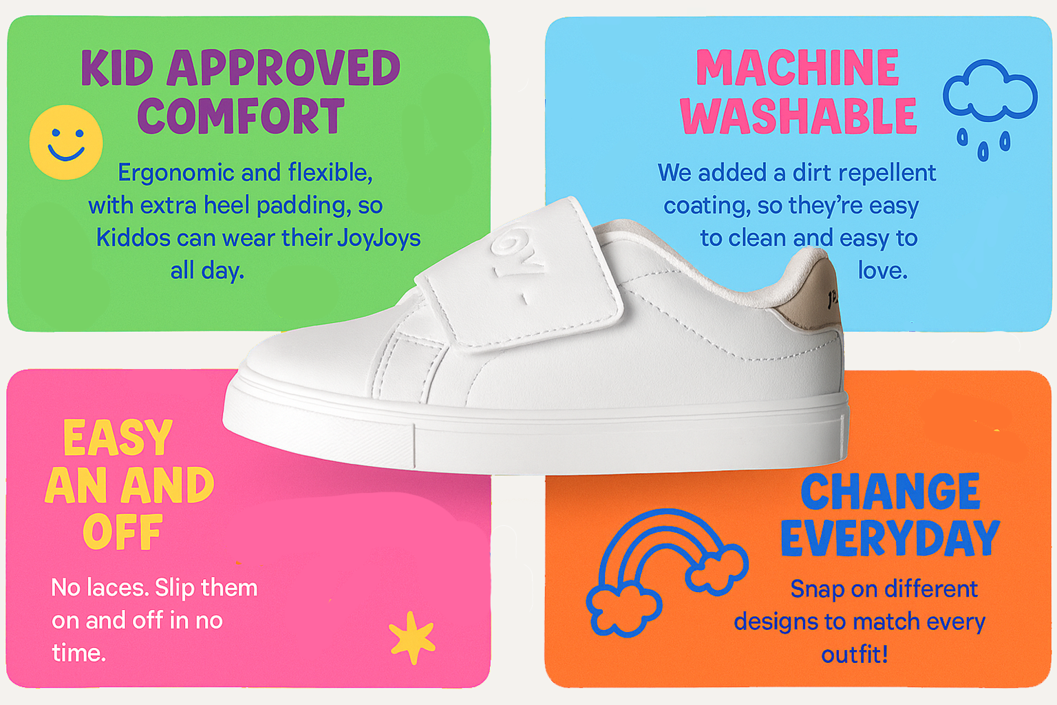 JoyJoy is the kids’ sneaker with snap-on straps you can switch anytime